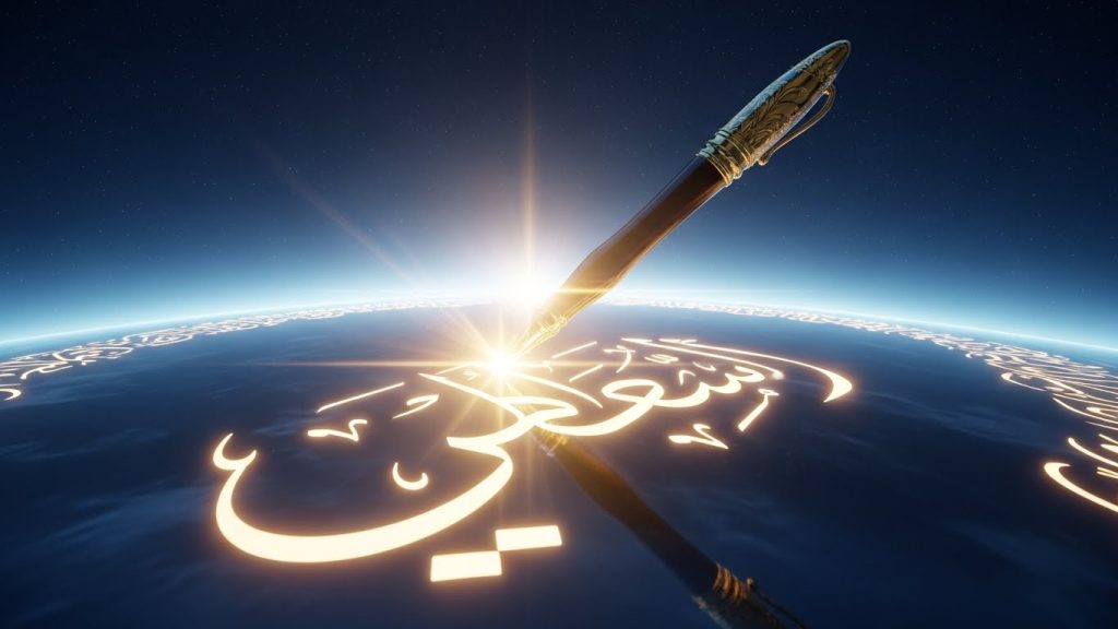 The Pen. First of all, God created the Pen. And there is a whole surah named after the Pen, Surah Al-Qalam. But have you ever noticed how Surah Al-Qalam begins? A surah whose name is after the thing that was created first, the Pen. It begins with one of the disconnected letters, Nun. A single letter, Nun, written simply. A letter, Nun.